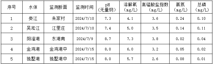 2024年7月蘇州工業園區地表水監測結果