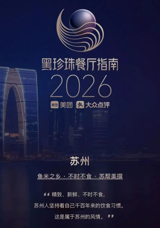 近日,“2026年黑珍珠餐廳指南”正式發(fā)布。今年蘇州共有10家餐廳上榜,風(fēng)光旖旎的金雞湖畔更是匯聚6家寶藏餐廳,分別是江南雅廚(李公堤店)、悅山府8號·CHAI8HOUSE(李公堤店)、蘇州洲際酒店·里瓦地中海扒房、金海華·悅食東方·CHAO27(洲際店)、蘇州柏悅酒店·西洲軒、蘇州凱悅酒店·華池88中餐廳。