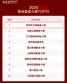 近日,母基金研究中心發布2025年度榜單其中,金雞湖商務區“聚寶盆”東沙湖基金小鎮榮登“2025最佳基金小鎮TOP10”榜首。