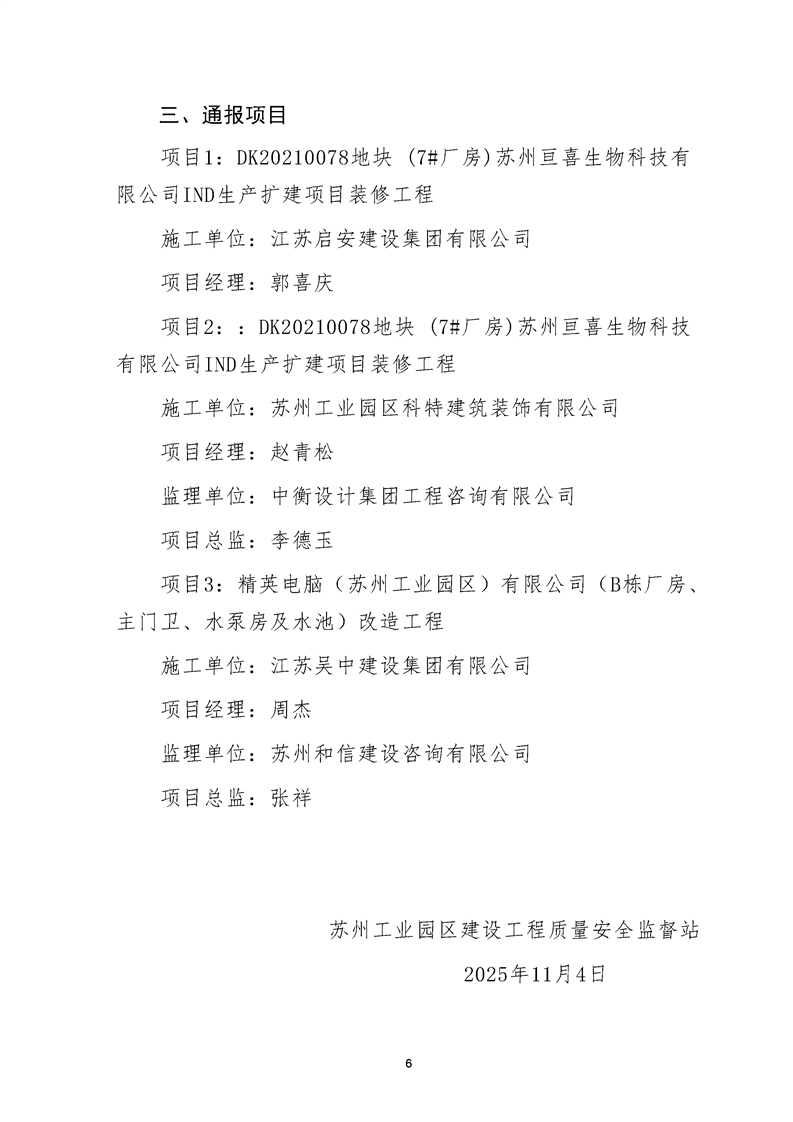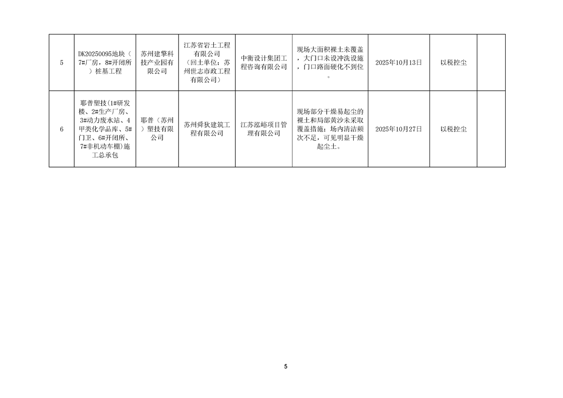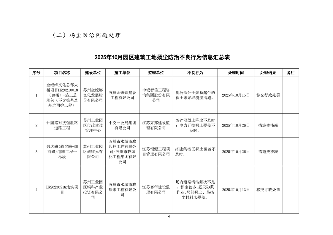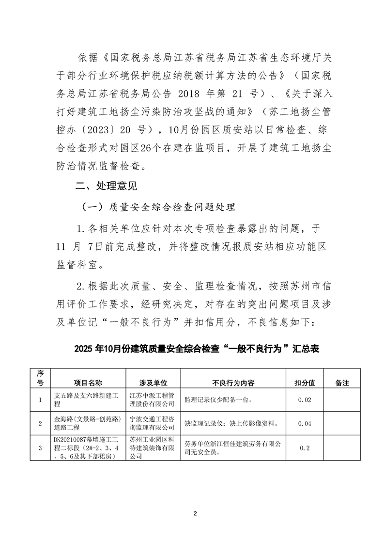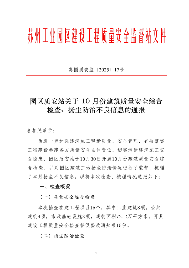 園區(qū)質(zhì)安站關(guān)于10月份建筑質(zhì)量安全綜合檢查、揚塵防治不良信息的通報