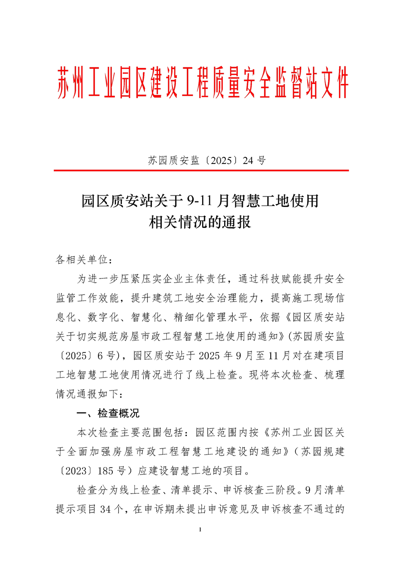 園區質安站關于9-11月智慧工地使用相關情況的通報