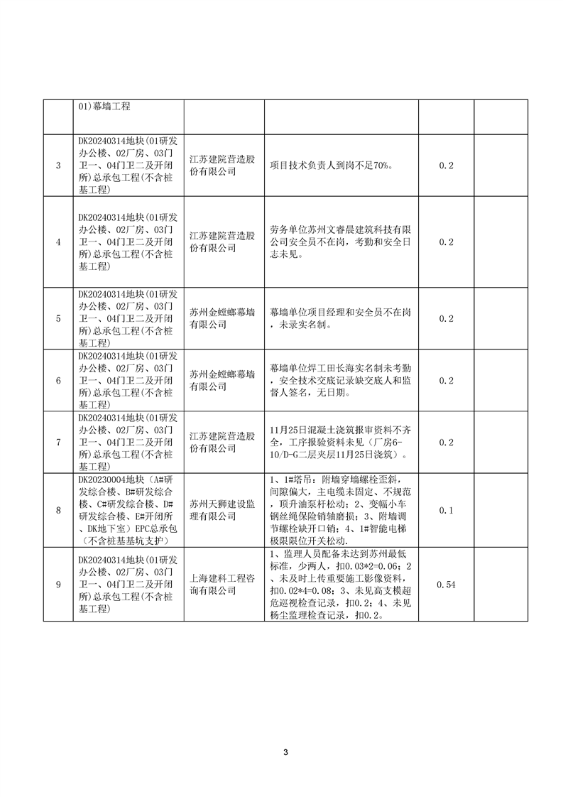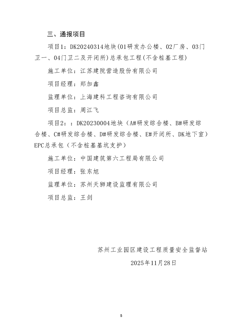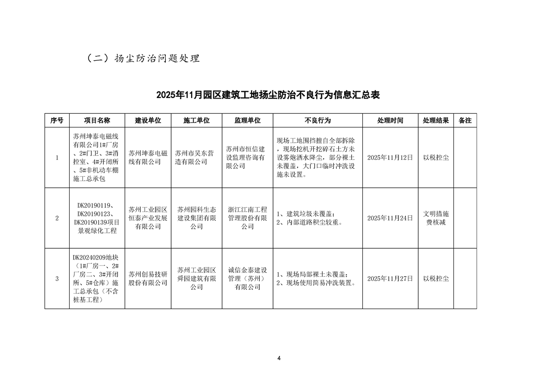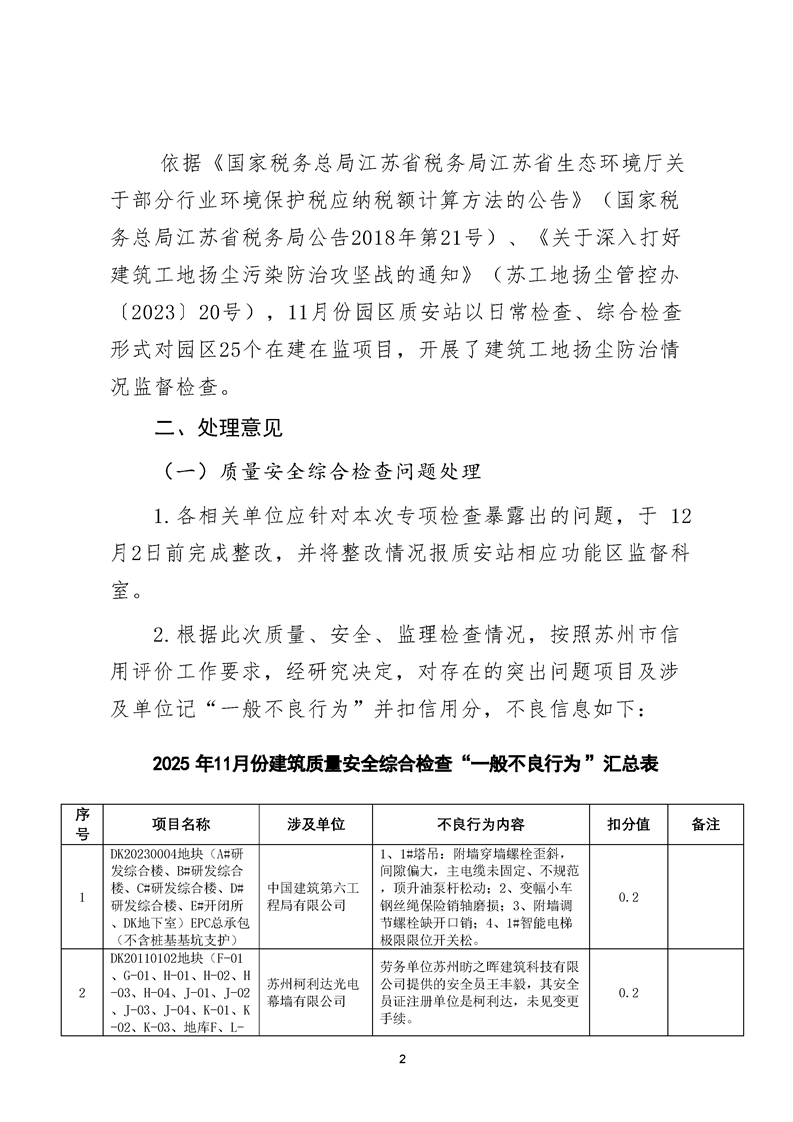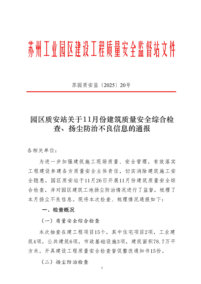 園區(qū)質(zhì)安站關于11月份建筑質(zhì)量安全綜合檢查、揚塵防治不良信息的通報