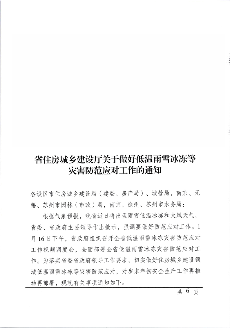 省住房城鄉建設廳關于做好低溫雨雪冰凍等災害防范應對工作的通知