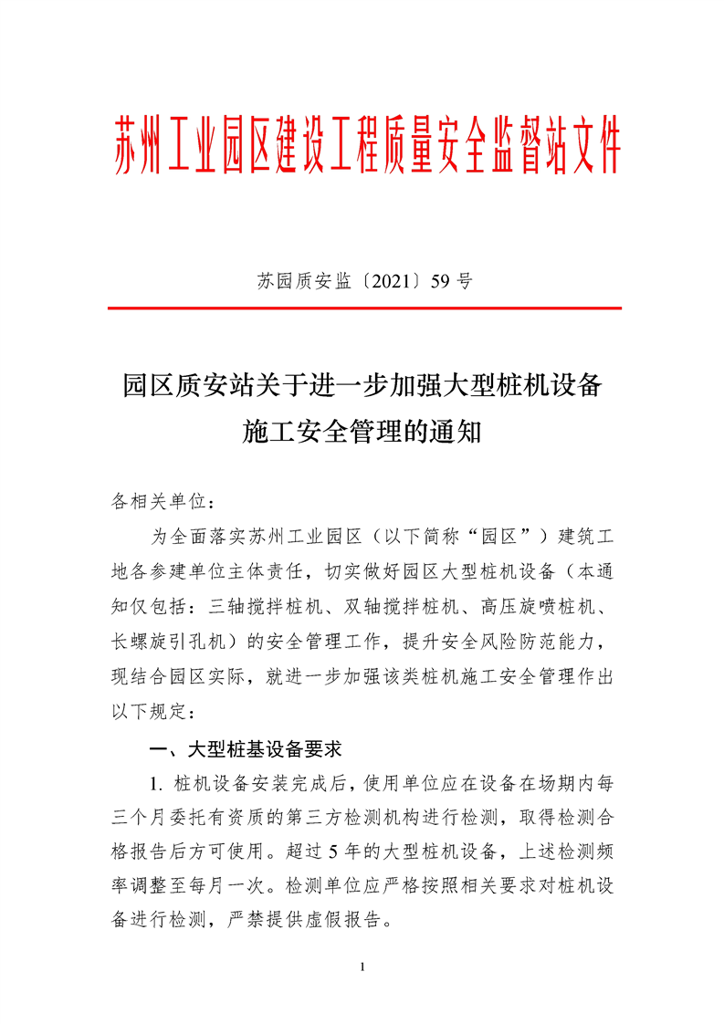 園區(qū)質安站關于進一步加強大型樁機設備施工安全管理的通知