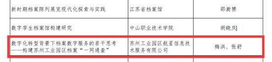 據悉,今年 3 月,中國檔學會面向全國青檔案工作者開始論文征,并收到投稿論文 1191 篇。中國檔學會組織專家對論文進了認真評審,評一等獎論 50 篇、等獎65 篇、三等獎論文 85 入選論文 777 近年來園區檔案管理中積極開展案科研工作,承多項國家、省、課題,園區檔案作者積極與國家、省、市案學術交流,在中國檔案》《檔與建設》核心期刊發表論文 10 余篇在宣傳區檔案工作,推園區及蘇檔案事業高質量展上做出積極貢