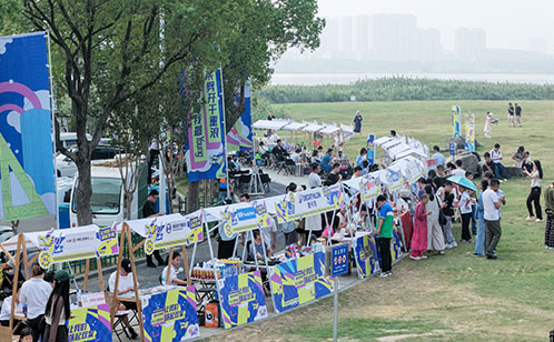 區(qū)內(nèi)高校、企業(yè)帶來(lái)非遺作品、輕食飲品、休閑文旅、運(yùn)動(dòng)裝備、文創(chuàng)周邊等湖畔市集攤位吸引了不少市民停留駐足、拍照打卡。