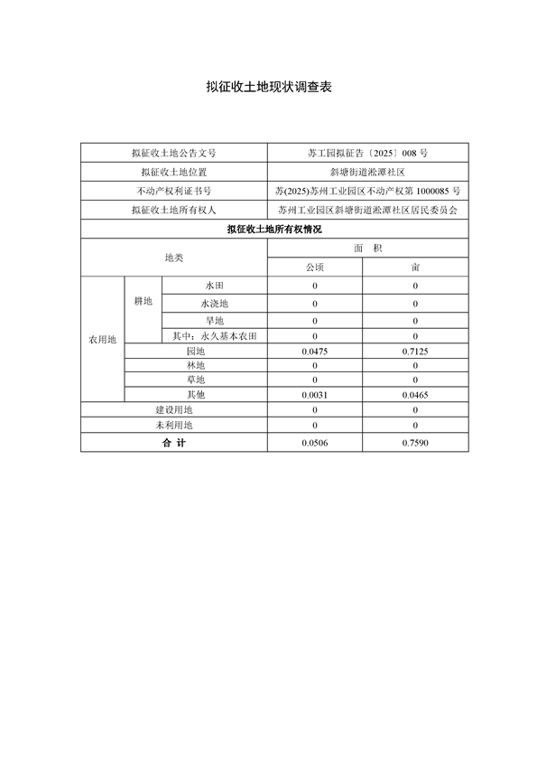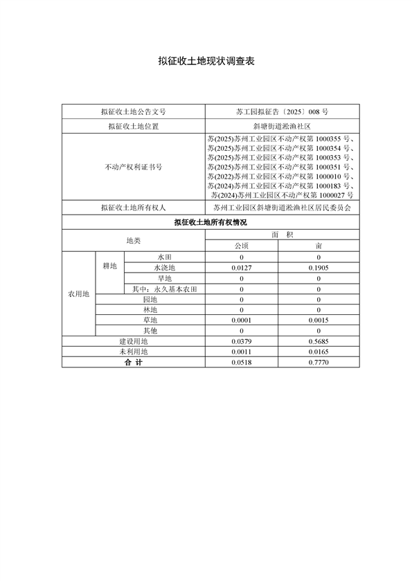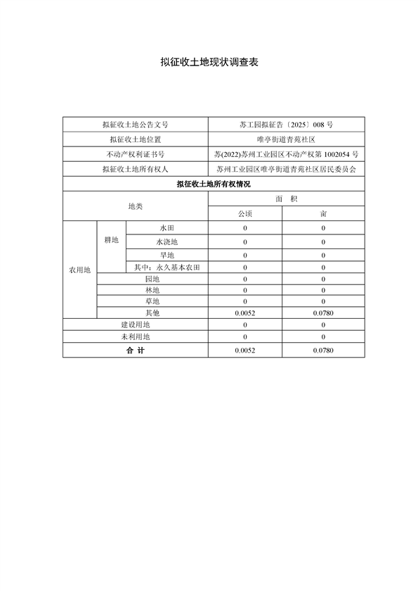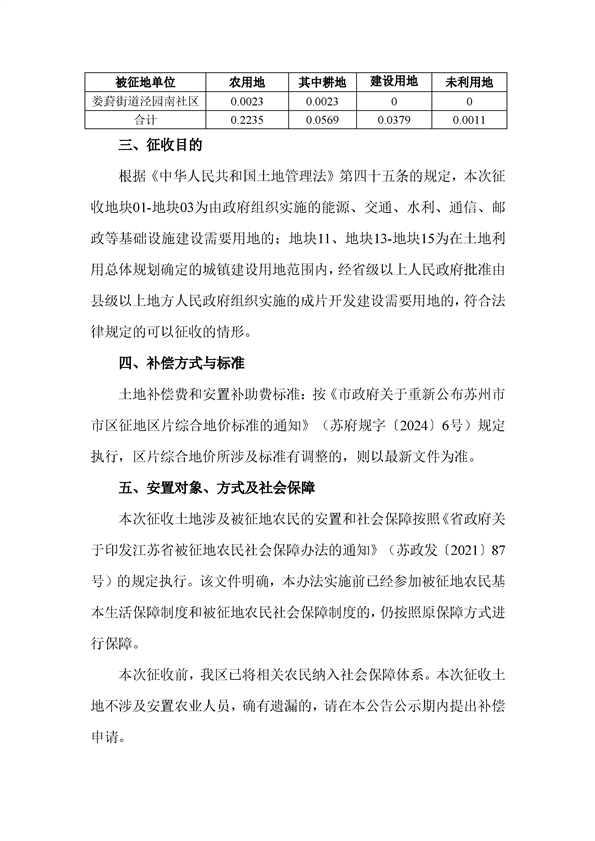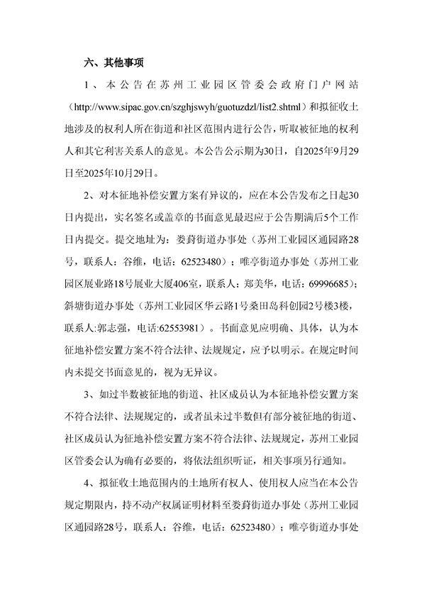 蘇州工業園區管理委員會征地補償安置方案公告(蘇工園征補安置〔2025〕006號)