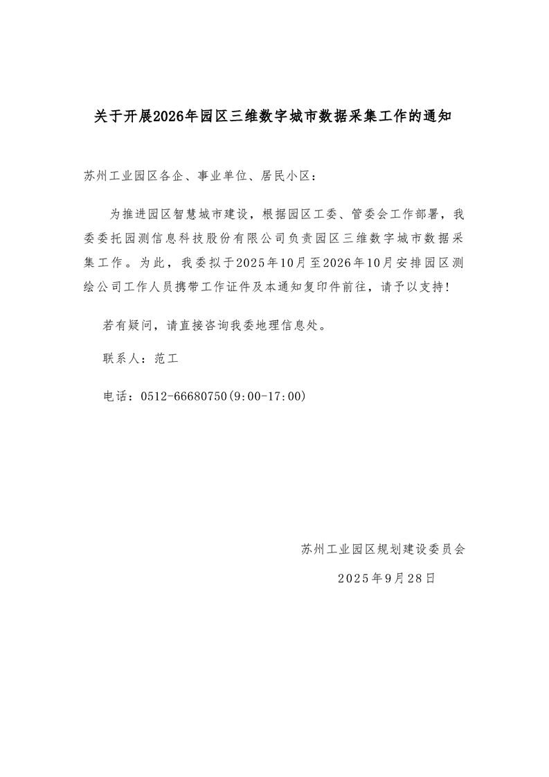 關(guān)于開展2026年園區(qū)三維數(shù)字城市數(shù)據(jù)采集工作的通知