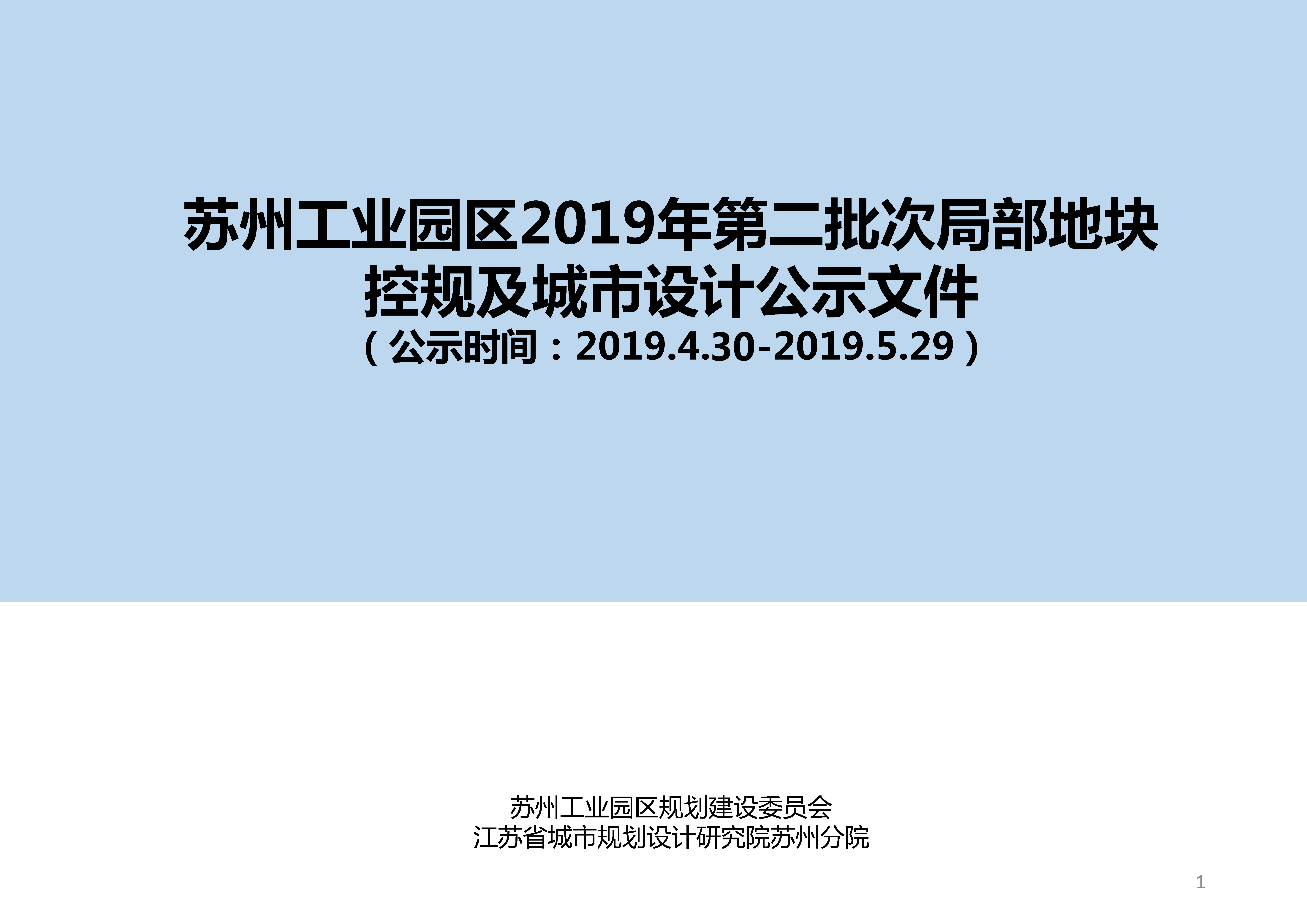 蘇州工業(yè)園區(qū)2019年第二批次局部地塊控規(guī)及城市設計公示文件(一)
