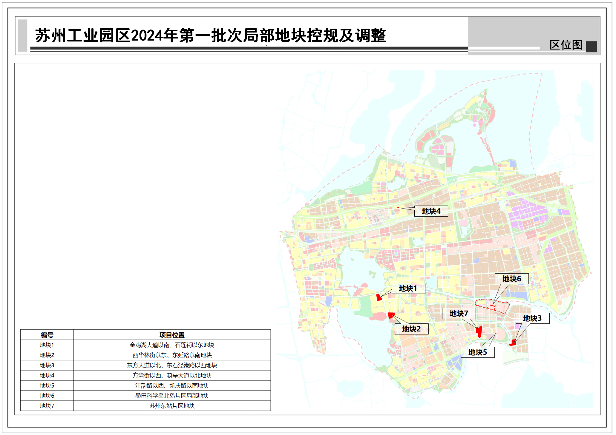 蘇州工業(yè)園區(qū)2024年第一批次局部地塊控規(guī)調(diào)整:共包括7個地塊,總用地面積約0.69平方公里,詳見附圖區(qū)位圖。