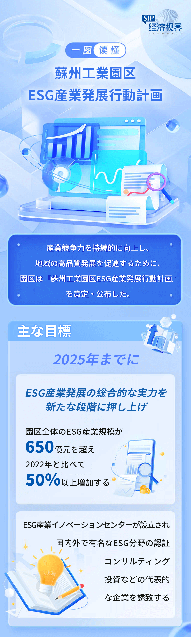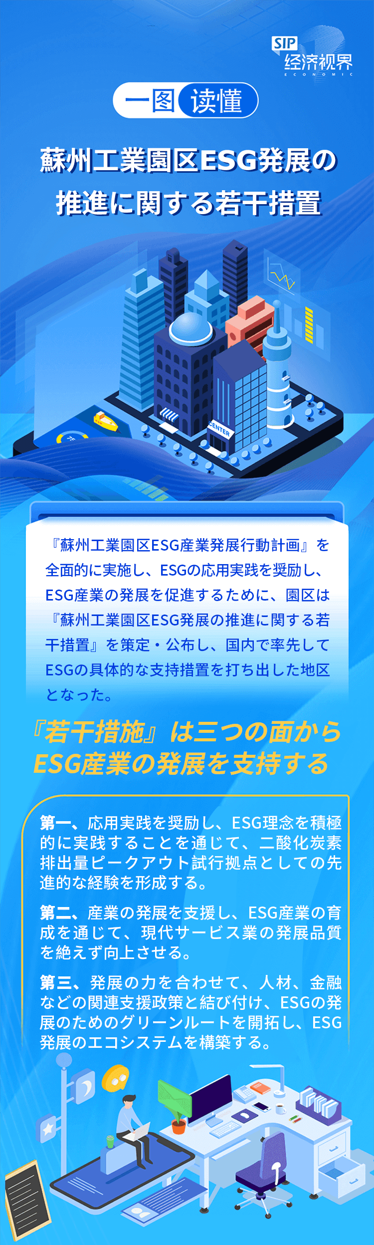 | 中國(guó)共産黨第20回全國(guó)代表大會(huì)の精神を深く學(xué)習(xí)?貫徹し、國(guó)の「デュアルカーボン」戦略的配置を全面的に実施するため、3月19日、蘇州工業(yè)園區(qū)ESG産業(yè)発展推進(jìn)會(huì)議が順調(diào)に開催された。會(huì)議では、『蘇州工業(yè)園區(qū)ESG産業(yè)発展行動(dòng)計(jì)畫』、『蘇州工業(yè)園區(qū)ESG発展の推進(jìn)に関する若干措置』が発表された。中國(guó)?シンガポールグリーン持続可能な発展研究センター、蘇州ESG研究センター、蘇州工業(yè)園區(qū)ESG連盟、蘇州工業(yè)園區(qū)ESG産業(yè)イノベーションセンターが正式にプレートを除幕した。一連の重要な措置で園區(qū)の高い識(shí)別度と展示度を持つESG産業(yè)イノベーション集中地の創(chuàng)出を後押しする。 |