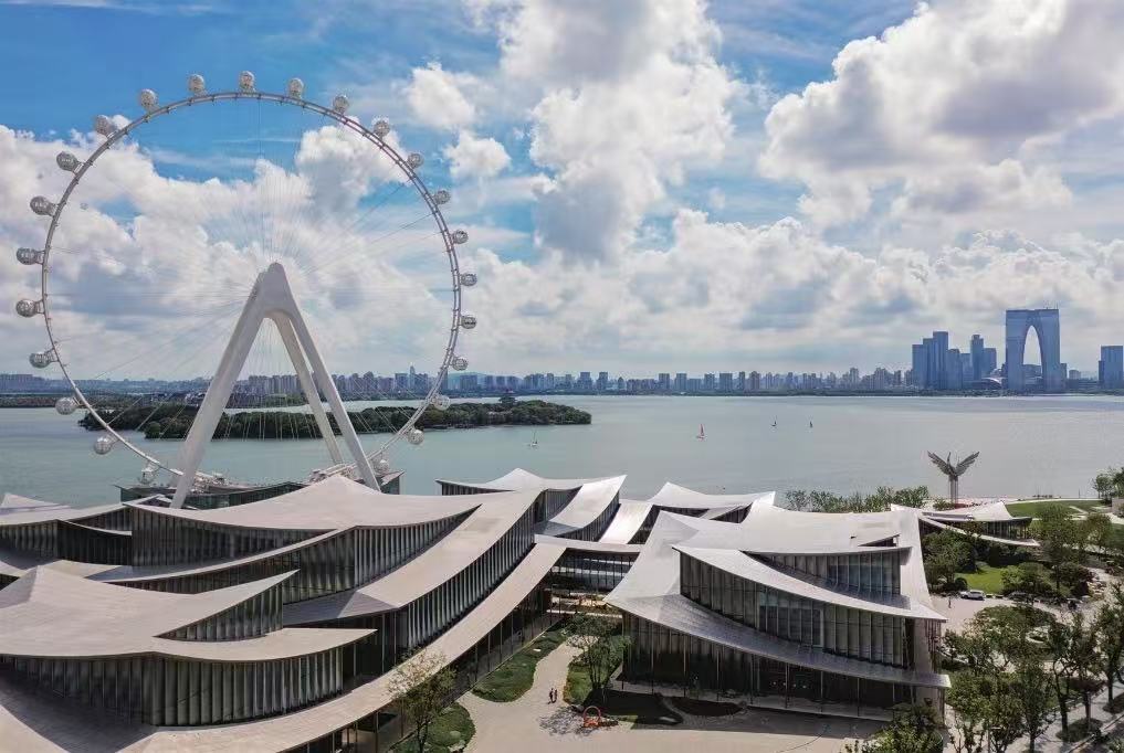 蘇州工業園區金鶏湖右岸エリアにおける重要な文化キャリヤーとして、蘇州當代美術館の設計理念では、伝統的な庭園の要素を取り入れ、現代的な手法で複數の単體展示ホールを廊下でつなぎ、庭園空間からなる文化複合體を形成している。
