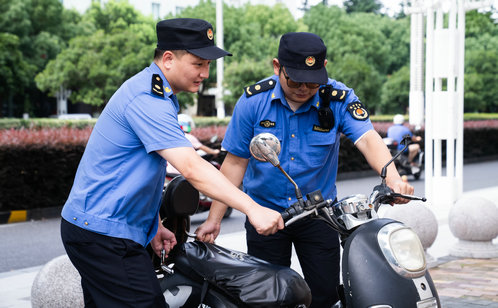 清脆的哨笛聲,利落的指揮手勢,車流如織的十字路口,他們在炙烤中指揮交通、引導(dǎo)車輛,他們是堅(jiān)守崗位的“熒光黃”;勸離流動(dòng)攤販、規(guī)范非機(jī)動(dòng)車停放,他們的制服總是被汗水浸濕,卻依然步履不停監(jiān)督執(zhí)法,他們把“城管藍(lán)”變?yōu)榭崾罾镒蠲赖那鍥錾痪用裼惺拢麄冸S叫隨到,與高溫?zé)o關(guān),與責(zé)任有關(guān),舍小家為大家,他們永遠(yuǎn)是居民心里的“志愿紅”……