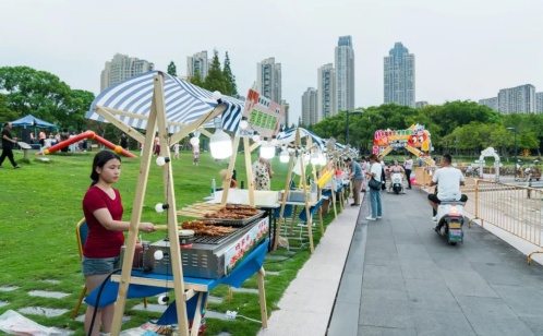 星光、草地、音樂、夜市一鍵開啟“夜嗨”模式“班味”消散,“松弛感”拉滿探尋市井里的“煙火味道”舞臺下是“幸福夜市”,政策宣傳、非遺漆扇體驗、DIY串珠手鏈、童年回憶雜貨鋪等20多個特色攤位聚集于此,打造“別YOUNG”的“歡慶之夜”,吸引廣大轄區青年前來“趕集”打卡,煥新勝浦夜經濟新活力。在享受音樂的同時,現烤魷魚、鐵板豆腐、燒烤大肉串、長沙臭豆腐、非遺糖畫、鮮榨果汁、手磨咖啡等各種美食也在一次又一次沖擊著大家的味蕾,現場一根根“烤串兒”、一聲聲“干杯”此起彼伏,這場盛宴讓每個人都感受到“煙火人間”。