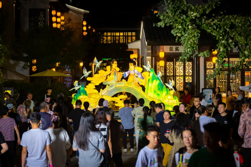 今年斜塘老街再次攜手蘇州燈彩國家級非遺傳承人汪筱文老師,以“風雅頌江南”為主題,通過燈彩組景的形式,帶來具有濃厚中式美學意境的節日場景氛圍體驗。