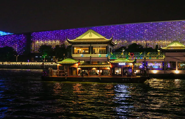 帆船夜航巡演結合帆船風格和視覺享受,在右岸水域精心規劃夜航巡演線路,在夜幕降臨時,燈光裝點的船只成為水面上的一道亮麗風景,和周圍環境的美景相互映襯。