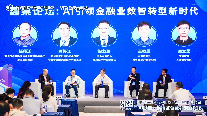 本次論壇還就《AI引領(lǐng)金融業(yè)數(shù)智轉(zhuǎn)型新時(shí)代》主題展開(kāi)圓桌對(duì)話,深度探討數(shù)字化浪潮下AI大模型在金融行業(yè)的應(yīng)用與挑戰(zhàn),并針對(duì)當(dāng)下金融機(jī)構(gòu)數(shù)字轉(zhuǎn)型過(guò)程中普遍存在的問(wèn)題給出建議。圓桌對(duì)話邀請(qǐng)?zhí)K州市金融科技協(xié)會(huì)生態(tài)專委會(huì)委員、盈天地副總裁任師遷作為主持,螞蟻集團(tuán)數(shù)字科技中國(guó)區(qū)業(yè)務(wù)發(fā)展部金融解決方案總監(jiān)龔振江、華為金融行業(yè)高級(jí)解決方案架構(gòu)師陶友勝、百度智能云高級(jí)解決方案架構(gòu)師王敏晟、東吳證券AI首席架構(gòu)師秦立堅(jiān)4位GenAI大模型的應(yīng)用下的不同角度分析探討金融數(shù)字化發(fā)展機(jī)遇。