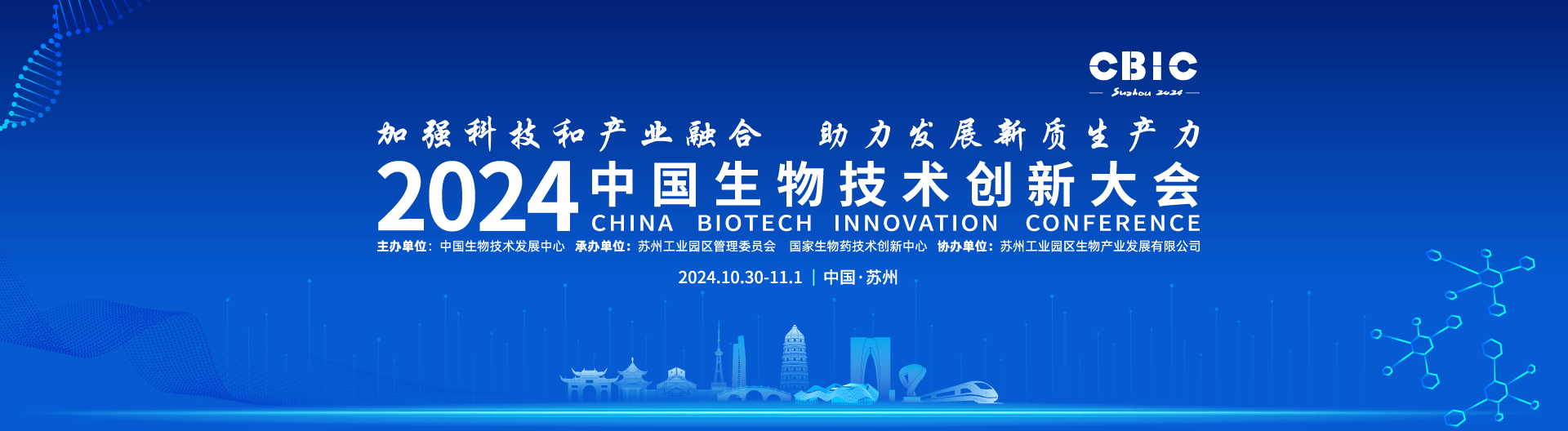 10月31日,2024中國生物技術創新大會在蘇州工業園區正式開幕,以“加強科技和產業融合,助力發展新質生產力”為主題,聚焦政策服務、科技創新和產業、生物經濟三大板塊,匯聚生物醫藥領域一流創新資源,通過主題報告、專題分會、閉門研討會、成果展示等形式,探討前沿趨勢、分享發展成果,助力健康領域新質生產力發展。
