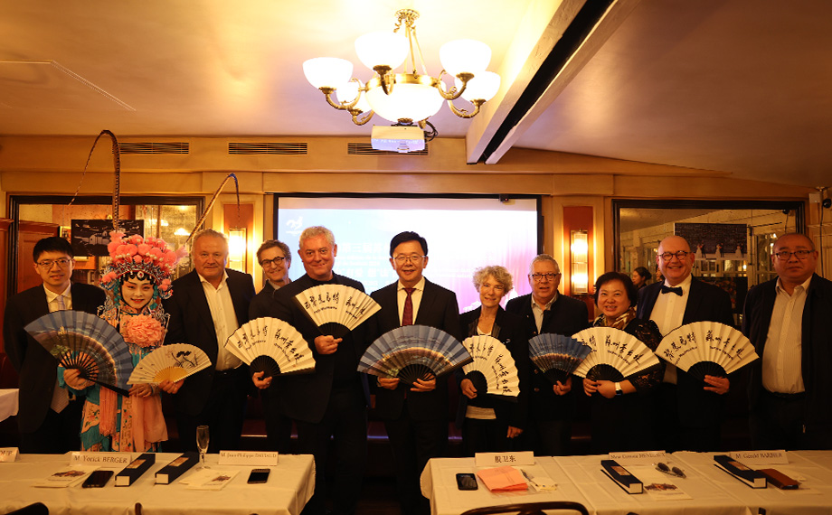 當(dāng)?shù)貢r間10月11日晚,在中法雙方的共同見證下,2024第三屆蘇州金雞湖中法文化藝術(shù)周在巴黎蒙馬特街區(qū)拉開帷幕。巴黎十八區(qū)政府議員M.Jean Philippe DAVIAUD、巴黎旅游會展局局長Mme.Corinne Menegaux、法中合作交流協(xié)會會長M.Yorick BERGER、蒙馬特商會會長M.Frédéric LOUP、法國泰勒藝術(shù)家基金會主席M.Jean Fran?ois LARRIEU等領(lǐng)導(dǎo)和嘉賓出席了活動。來自巴黎十八區(qū)政府、巴黎會展旅游局和巴黎高校、博物館、銀行、投資基金、文旅企業(yè)的一百多位嘉賓共聚一堂,共話交流與合作。活動由蘇州工業(yè)園區(qū)文體旅游局和巴黎旅游會展局共同主辦,新建元集團圓融發(fā)展公司、蘇州工業(yè)園區(qū)公共文化中心、蘇州工業(yè)園區(qū)文化產(chǎn)業(yè)招商中心、蒙馬特商會和法中合作交流協(xié)會共同承辦。