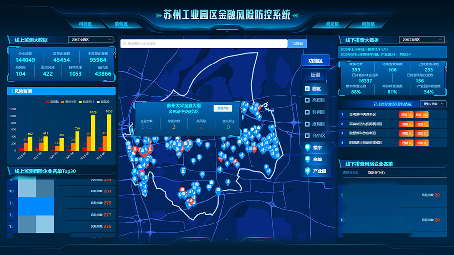 為進(jìn)一步筑牢防非堅(jiān)實(shí)防線,園區(qū)積極運(yùn)用現(xiàn)代信息技術(shù)手段加強(qiáng)監(jiān)測預(yù)警。活動中,由園區(qū)金融發(fā)展和風(fēng)險(xiǎn)防范局牽頭建設(shè)的園區(qū)金融風(fēng)險(xiǎn)防控系統(tǒng)正式上線,整合工商、警情等44類數(shù)據(jù),疊加企業(yè)征信評分,運(yùn)用9個(gè)維度、96個(gè)細(xì)化指標(biāo),為全區(qū)超14萬家企業(yè)進(jìn)行科學(xué)賦分,進(jìn)行分級分類處置。系統(tǒng)全程記錄監(jiān)測預(yù)警、研判定級、分類處置情況,構(gòu)建風(fēng)險(xiǎn)企業(yè)閉環(huán)管理模式,實(shí)現(xiàn)風(fēng)險(xiǎn)隱患一屏統(tǒng)覽、處置流程一圖掌控。