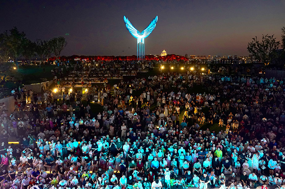 “之前看演出節(jié)目,還擔(dān)心器樂演奏會聽不懂,沒想到旋律一響,耳熟能詳。孩子的國潮街舞更是精彩!”市民王女士此前看到公眾號推薦,特地留出了今晚的時間,她表示不虛此行:“節(jié)目編排中西合璧,有專業(yè)藝術(shù)家,也有純粹的愛好者,而且在這樣一個開放的公共區(qū)域開展,與園區(qū)開放、包容的城市氛圍很般配?!?/p>
