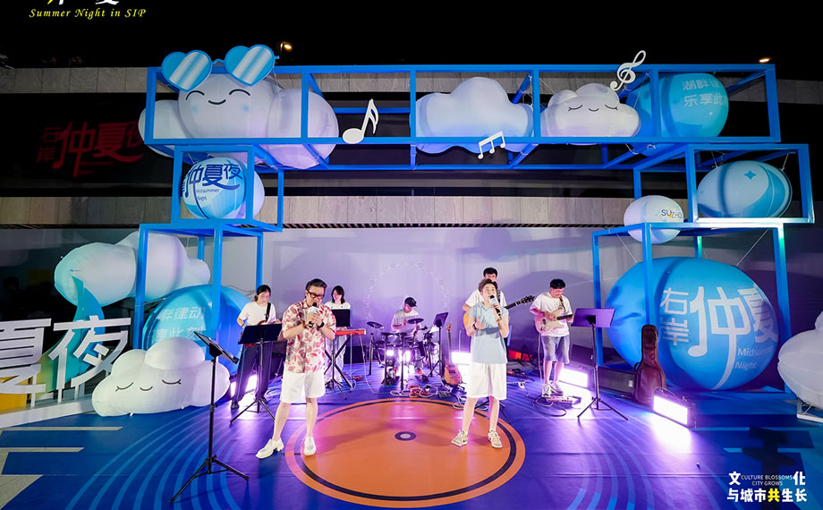 星光為幕,湖水為弦,金雞湖的浪漫在光影與人文的交織中熠熠生輝。流行樂團“佩琦和朋友們”這支由園區(qū)青年組成的樂團,也用他們的青春張揚,展現(xiàn)了時尚園區(qū)的活力本色。
