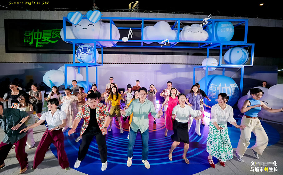 作為園區(qū)精心打造的融合藝術(shù)、文化與公共生活的城市地標(biāo),金雞湖右岸定位“悅動的藝術(shù)水岸、活力的城市客廳”,以開放姿態(tài)匯聚多元力量,勾勒多元共生的城市文化新圖景。“右岸仲夏夜”系列展演活動,正是城市人文活力的生動呈現(xiàn)。