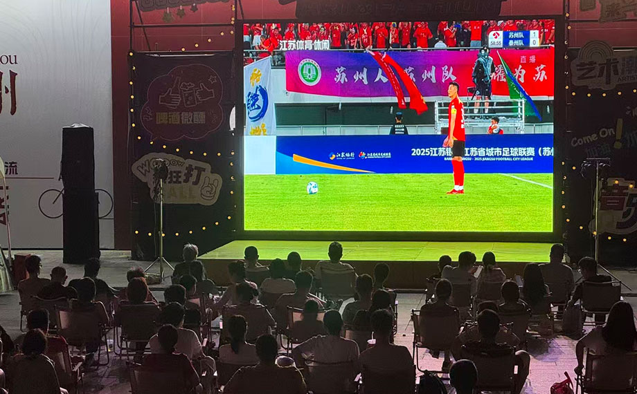 “進球啦,蘇州隊太棒了!”隨著蘇州球員一腳踢破泰州隊的大門,聚集在688藝術(shù)潮流廣場觀看“蘇超”的市民瞬間激動起來,周邊的市集商家也鼓起掌來。而此時,一杯應景的特調(diào)則成為不少球迷的慶祝方式。