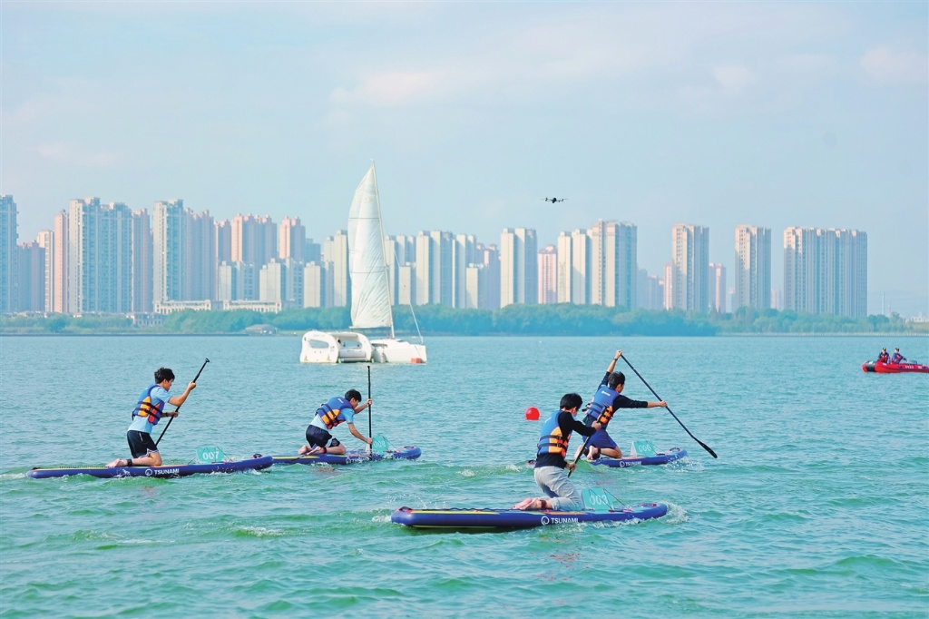 賽事作為園區金秋三湖嘉年華系列活動之一,以“商旅文體展深度融合”的核心理念,將賽場與消費場景無縫鏈接,形成了“水上有競逐、岸上有消費、線上線下有互動”的立體化體驗。