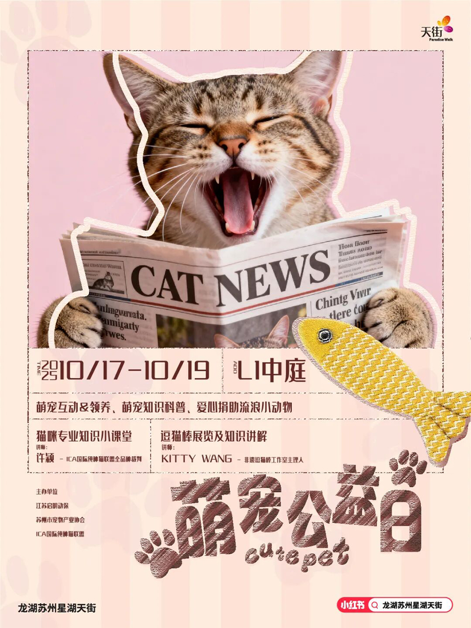 此外,10月17日—19日,星湖天街萌寵公益日活動也在星湖天街優衣庫中庭同步上線。萌寵互動&領養、萌寵知識科普、萌寵愛心捐助等活動等你參與,還有ICE國際裁判現場授課貓咪的專業知識,以及非遺逗貓棒工作室主理人帶來逗貓棒展覽及知識講解。