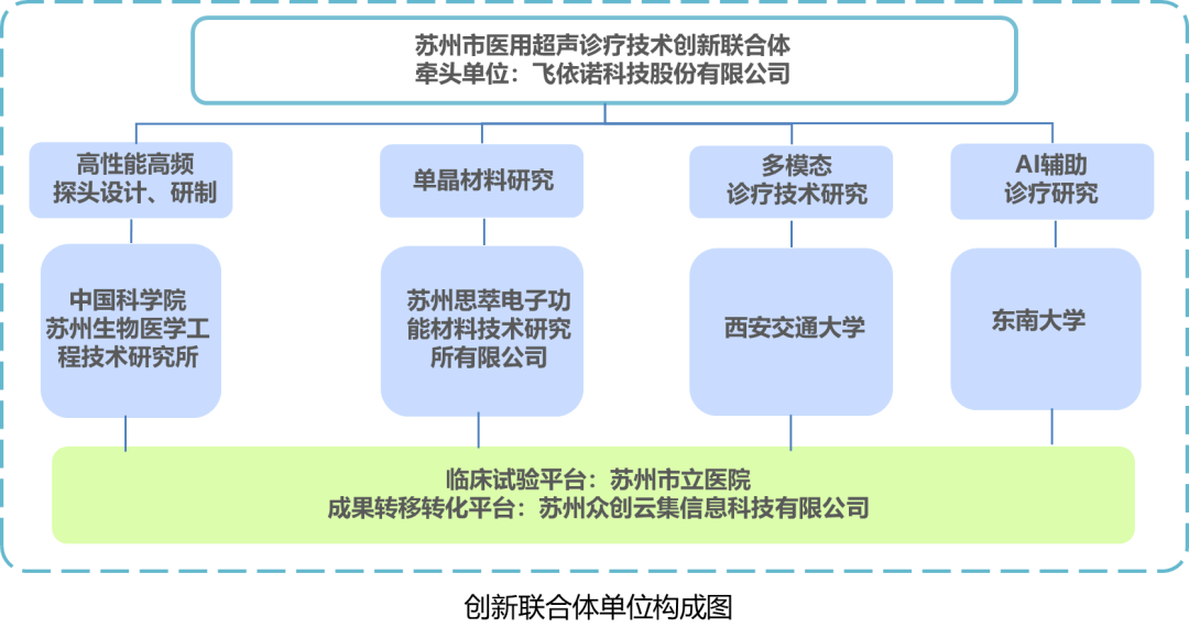 著眼于系統(tǒng)提升國內(nèi)高端醫(yī)用超聲診療產(chǎn)品競爭力,在園區(qū)的支持下,飛依諾牽頭組建超聲診療創(chuàng)新聯(lián)合體,全面整合國內(nèi)西安交通大學(xué)、東南大學(xué)、中國科學(xué)院蘇州生物醫(yī)學(xué)工程技術(shù)研究所(下稱“醫(yī)工所”)、蘇州思萃電子功能材料技術(shù)研究所有限公司、蘇州市立醫(yī)院、蘇州眾創(chuàng)云集信息科技有限公司等產(chǎn)業(yè)鏈上下游機構(gòu),形成從技術(shù)預(yù)研、聯(lián)合攻關(guān)、工程產(chǎn)業(yè)化到臨床應(yīng)用的完整創(chuàng)新鏈,目標建成世界級醫(yī)用超聲診療技術(shù)創(chuàng)新聯(lián)合體。