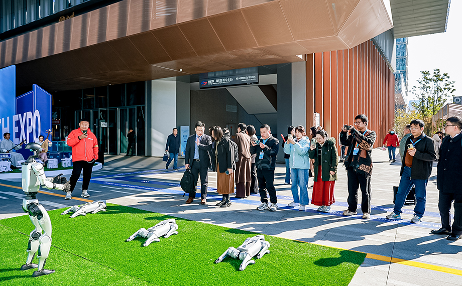 步入市集,婉轉(zhuǎn)柔美的蘇州評彈如清泉般流淌,瞬間將人帶入江南雅境。非遺展區(qū)內(nèi),蘇扇、緙絲、蘇繡等傳統(tǒng)工藝品在陽光下流轉(zhuǎn)生輝,市民紛紛駐足細(xì)賞、咨詢挑選。而在數(shù)字潮玩區(qū),科技感與未來感撲面而來,智能機(jī)器人揮舞雙臂與觀眾互動(dòng),憨態(tài)可掬的機(jī)器狗隨著指令完成轉(zhuǎn)圈、跳躍等高難度動(dòng)作,盡顯科技魅力,引得圍觀群眾陣陣喝彩。