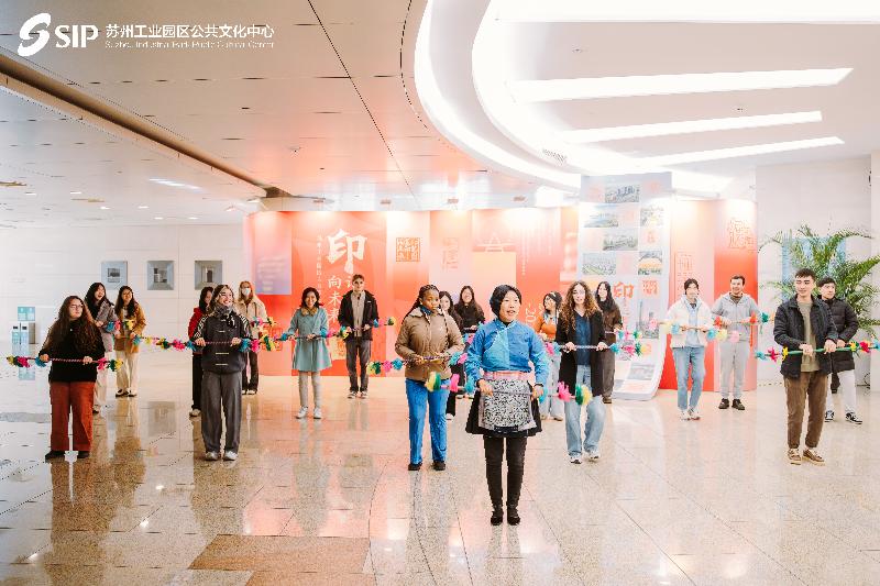 篆刻市集活動以“五感”沉浸式體驗為核心,市民不僅能親手觸摸大型印章、體驗拓印技藝,還能參與草鞋山雪糕創意互動和“印跡尋蹤”打卡,將篆刻從展柜搬進生活市集。同時,篆刻突破地域邊界,國際專場活動邀請40名外籍人士齊聚一堂,結合“‘打連廂’非遺演示”“跨文化篆刻創作工坊”和“中外青年非遺對話”三場主題活動,讓江南非遺成為文化互鑒的鮮活載體,賦能園區文化國際化表達。中新集團是蘇州工業園區開發建設核心載體,中新集團副總裁尹健表示,他們也將發揮跨國合作優勢,把大眾篆刻推向海外合作園區,打造中外文化互鑒的藝術載體。