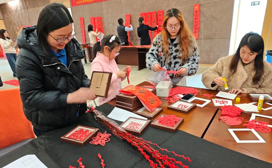 活動(dòng)現(xiàn)場(chǎng)氣氛熱烈,紅紙翻飛,墨香四溢。提筆落墨間,“春風(fēng)送暖花千樹 駿馬揚(yáng)蹄路萬程”“闔家安康皆如意 滿門福氣盡亨通”等一副副新春祝福春聯(lián)和“?!弊周S然紙上。參與者們揮毫潑墨,親手書寫“春風(fēng)得意”“平安喜樂”等祝福語,感受中華優(yōu)秀傳統(tǒng)文化的魅力;剪刀翻飛下,一張張紅紙化作“?!弊?、馬年生肖等主題窗花,增添了節(jié)日的喜慶氛圍;在體驗(yàn)拓印技藝的過程中,大家將“馬上有?!薄?026 ?!钡茸謽油赜≡诩t紙上,收獲了各具特色的新春裝飾。共同迎接新年的喜悅,拉近了度假區(qū)企業(yè)、社區(qū)之間的距離,營(yíng)造出“企業(yè)共建、鄰里和睦”的和諧氛圍,為區(qū)域資源聯(lián)動(dòng)奠定了良好基礎(chǔ)。