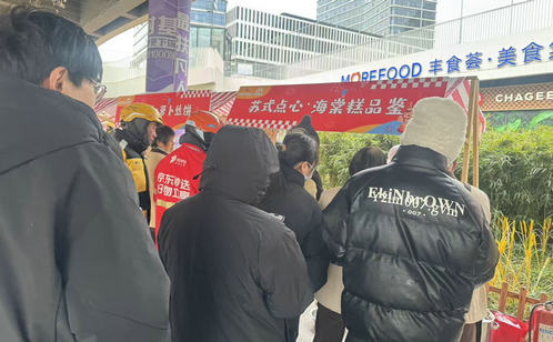 市集現場暖意氤氳,一碗碗熱氣騰騰的紅豆小圓子,承載著社區對新業態群體最真摯的牽掛與關懷。外賣騎手、快遞小哥等奔波在一線的新業態從業者,在忙碌間隙接過這份暖心甜品,卸下一身疲憊,真切感受著社區大家庭的溫情與暖意。海棠糕的香甜軟糯、蘿卜絲餅的鮮香酥脆,一道道蘇州地道傳統美食整齊陳列,社區工作人員與紅色志愿者有條不紊地分發,讓居民在味蕾的享受中重拾兒時年味,也讓新業態群體在濃郁的煙火氣息中快速融入社區、找到歸屬。這場以冬日美食為紐帶的溫情行動,搭建起社區與居民群眾、新業態群體之間的溝通橋梁,以“小關懷”凝聚“大合力”,繪就出鄰里相融、共建共享的基層治理同心圓。