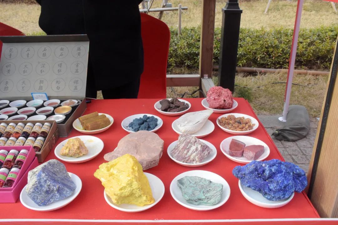 此次大會,張佰林不僅帶來了各色原材料,還帶來了多款針對不同用戶需求的12色國畫顏料,以及印泥、礦石標本等品類的相關產品。現場,他還積極與大家分享國畫顏料制作的工藝流程和產品特色,并邀請有興趣的市民游客去工廠體驗。