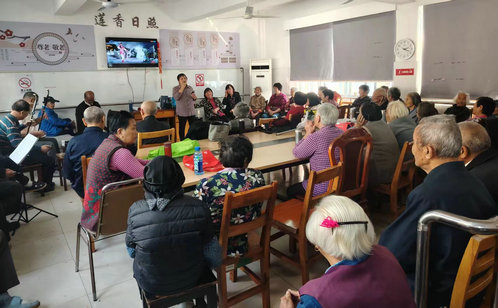 在蓮香社區(qū)的日間照料中心,經(jīng)典劇目《梁祝》《牡丹亭》等輪番上演,雖然沒有精致的服裝和妝造,但“民星”們精湛的表演和悠揚(yáng)的唱腔還是贏得了居民們的陣陣掌聲。完全由社區(qū)居民自發(fā)成立的蓮聲戲曲社,在新的一年中隊(duì)伍更加壯大,目前固定社員已有12人,每個(gè)人在吹、拉、彈、唱上都有自己的專長(zhǎng)。每周二下午的日照中心活動(dòng)室里總是人頭攢動(dòng),社區(qū)的戲迷們更是早早地來(lái)到了活動(dòng)室,就為了搶到靠前的位置。“現(xiàn)在每周二,我雷打不動(dòng)地過(guò)來(lái)聽?wèi)颍?/font>在家門口看大家的表演,真是過(guò)足了戲癮!”社區(qū)居民李奶奶興奮地說(shuō)道。社區(qū)常態(tài)化開展豐富多彩的文化活動(dòng),不僅讓居民感受到了文化的魅力,也進(jìn)一步拉近了鄰里之間的距離,讓居民“家門口”的文化大餐觸手可及。