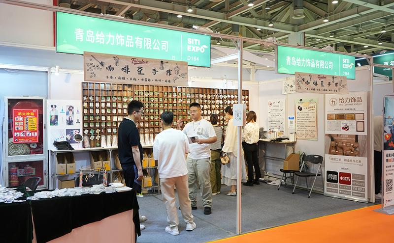 在咖啡豆手作展位,咖啡文化以另一種藝術形式煥發新生,它不再是杯中的飲品,而是化身為時尚飾品的主角。一顆顆烘焙過的咖啡豆被精心打磨,串聯成手鏈,散發出淡淡的咖啡醇香,吸引了許多年輕人的目光。此外,展商還展出了咖啡杯吊墜、咖啡壺造型耳環等創意飾品,將咖啡元素與潮流配飾完美融合,成為展會上的打卡熱點。