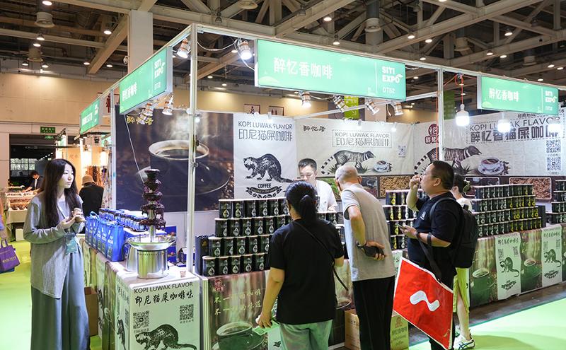 展會上不僅有許多新奇口味的咖啡,還有不少世界珍稀咖啡。印尼貓屎咖啡的展臺前人頭攢動,這種由椰子貓消化發酵后產出的咖啡豆,以其獨特的醇厚口感和花果香氣聞名。現場,咖啡師精心沖泡,琥珀色的液體傾瀉而下,濃郁香氣瞬間彌漫。“印尼貓屎咖啡產量很少,入口絲滑,帶有淡淡的焦糖和黑巧克力尾韻,沒有苦澀感。”