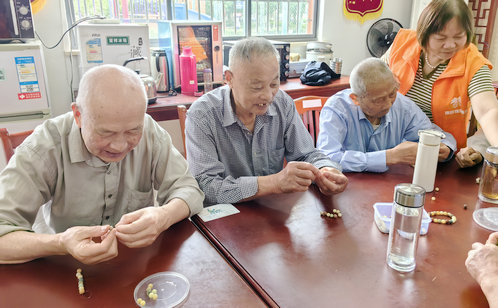 面對(duì)銀齡群體精神文化供給不均衡現(xiàn)狀,蓮韻社區(qū)日間照料中心創(chuàng)新打造“藝趣工坊”,推出菩提串珠、水晶花藝、綠植盆栽等手工課程,為長(zhǎng)者搭建了一座“精神糧倉(cāng)”,在創(chuàng)造中重拾生活意趣。在紅色管家志愿者的指導(dǎo)下,一顆顆菩提籽在指尖串聯(lián)成寓意吉祥的珠鏈,晶瑩剔透的水晶花在巧手下綻放出別樣光彩,充滿生機(jī)的綠植盆栽在精心照料中煥發(fā)盎然綠意,這些手工項(xiàng)目宛如“生活的調(diào)色盤(pán)”,不僅成為疏解孤獨(dú)感的“情緒減壓閥”,更以美育浸潤(rùn)煥發(fā)銀齡精神風(fēng)貌,推動(dòng)社區(qū)文化服務(wù)從零散活動(dòng)向常態(tài)化滋養(yǎng)體系躍升,為精塑“雅趣共生”服務(wù)格局注入鮮活脈動(dòng)。