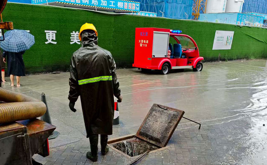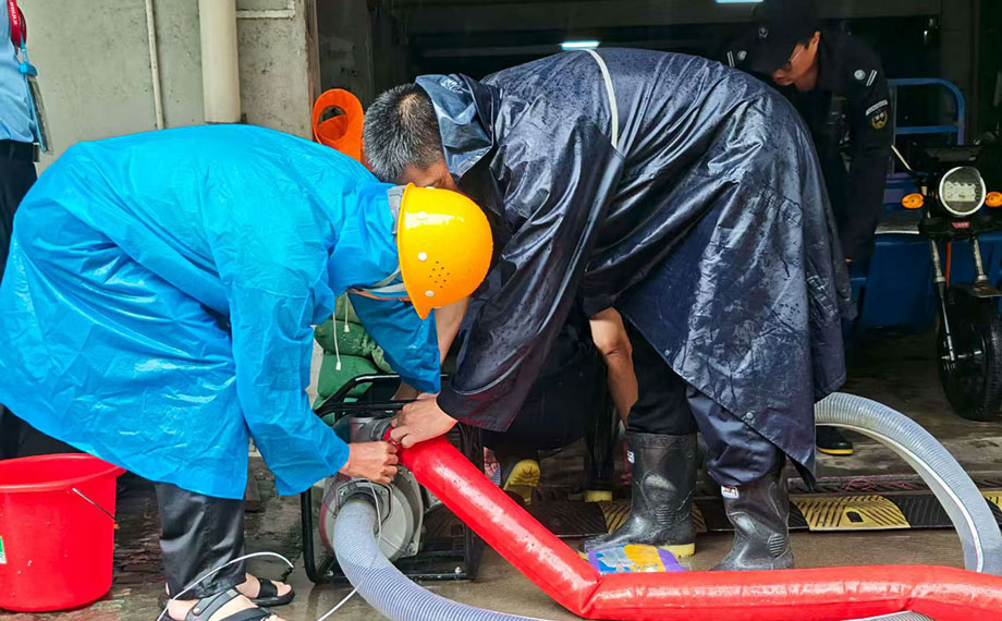 在金雞湖街道貴都社區(qū),社區(qū)工作人員針對二期車庫這一重點,聯(lián)合物業(yè)提前部署,精準施策,在車庫入口處,配備大功率抽水泵,以便及時排除可能的積水威脅,為業(yè)主的財產(chǎn)安全撐起“保護傘”。其他各社區(qū)也整合物業(yè)、志愿者等多方力量,聚焦地下車庫、雨污水井、排水管網(wǎng)等關(guān)鍵部位,加強排查、疏通和清理,確保雨情第一時間響應(yīng)、險情第一時間處置。