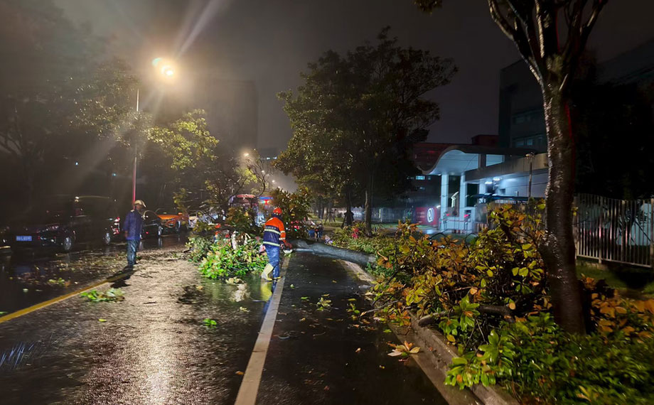 當晚,市政服務(wù)集團累計出動人員1340人次、車輛435車次,排查城市道橋、涵隧及附屬設(shè)施56處,及時清理積水點、疏通雨水篦子、處置倒伏樹木及斷枝,及時保障環(huán)湖、地庫等信號、防護措施落地落實,通過技防加人防,確保全區(qū)道橋涵隧、泵站閘口安全有序運行。