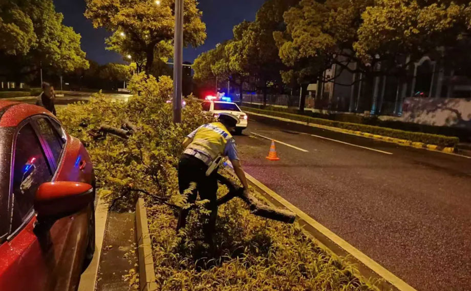 “竹節(jié)草”來勢洶洶,給出行帶來極大不便。園區(qū)公安警力始終堅守崗位,風雨中疏導交通,保障道路有序,遇到受困群眾,及時伸出援手,提供暖心救助。