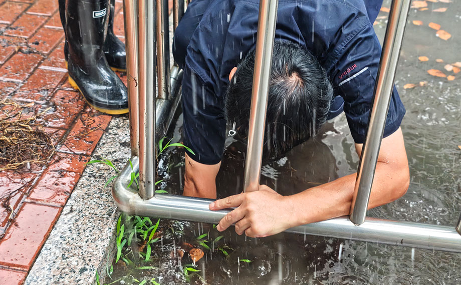 唯亭街道下穿涵洞較多,為避免積水導致安全隱患,街道緊急抽調(diào)綜合執(zhí)法隊員、市政物業(yè)公司等組成應(yīng)急隊伍,24小時蹲點監(jiān)測守護,及時清理落葉、碎石等堵塞物,確保排水管網(wǎng)通暢。小區(qū)里,社區(qū)工作人員也緊抓風雨暫歇的間隙深入排查,聯(lián)動物業(yè)及相關(guān)部門及時排澇、疏通,合力保障居民安全與小區(qū)秩序。