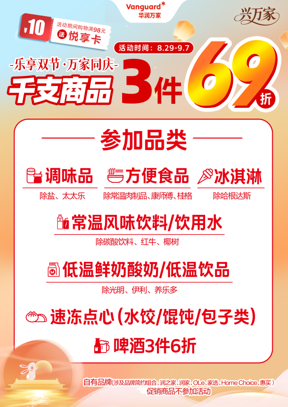 聚焦日常需求,江蘇華潤萬家超市推出大幅讓利活動。綜合超市內超萬種商品對會員開放專屬折扣,涵蓋米面糧油、洗漱用品等生活必需品;社區超市則聚焦高頻消費品類,針對調味品、方便食品、速凍點心等千款商品,多件組合優惠,方便周邊家庭就近囤貨,為開學后的日常飲食與生活提供保障。