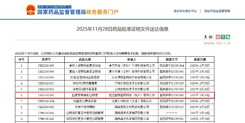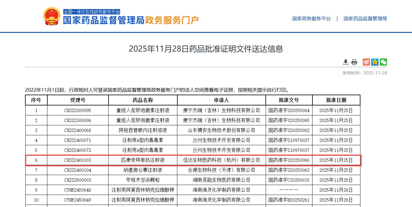 11月28日,信達生物制藥集團(香港聯交所:01801)宣布,其自主研發的信美悅?(匹康奇拜單抗注射液)已獲得國家藥品監督管理局(NMPA)批準,用于適合系統治療的中重度斑塊狀銀屑病成年患者。