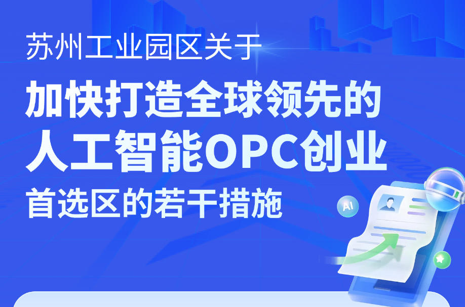 近日,蘇州工業(yè)園區(qū)發(fā)布《關(guān)于加快打造全球領(lǐng)先的人工智能OPC創(chuàng)業(yè)首選區(qū)的若干措施》,以一系列力度空前的“政策禮包”,前瞻布局“個(gè)人人工智能公司”(OnePersonCompany,簡稱OPC)這一創(chuàng)新業(yè)態(tài)。