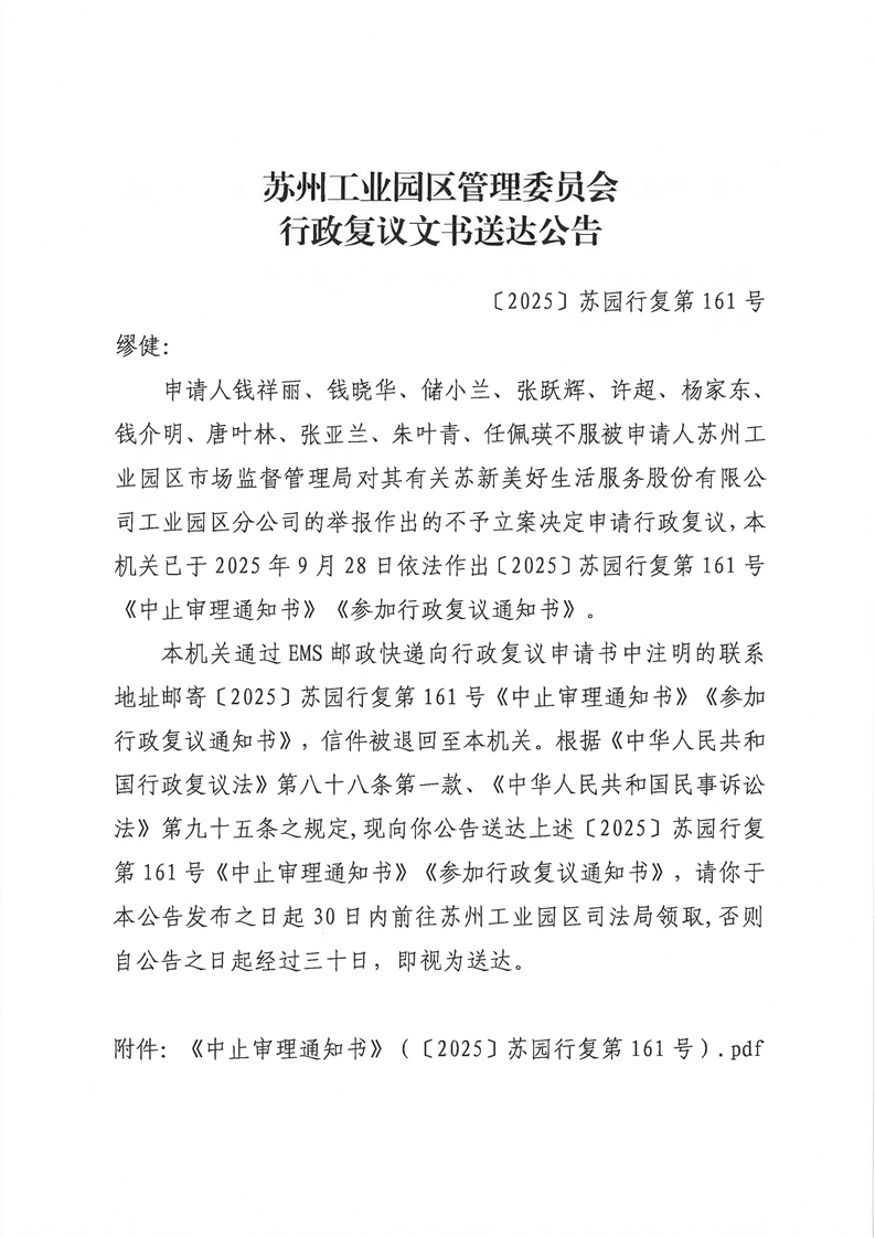 行政復議文書送達公告