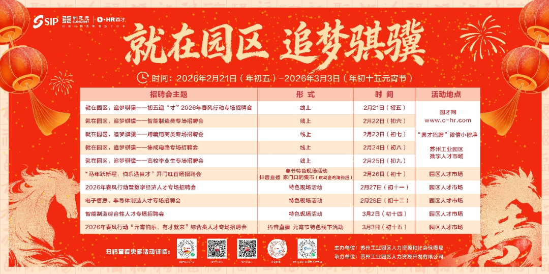 為保障新興產(chǎn)業(yè)對人才和用工的需求,園區(qū)多措并舉,助力企業(yè)招才引智。2026年2月至3月,對于新錄用首次來園區(qū)就業(yè)的外地職工,園區(qū)給予企業(yè)每人500元的引才就業(yè)補貼;對于包車“點對點”組織外地職工返崗復(fù)工的企業(yè)或機構(gòu),給予實際包車費用50%的交通費補貼。節(jié)后舉辦的招聘會上,高端制造、集成電路與生物醫(yī)藥等技術(shù)崗位需求旺盛,薪資待遇穩(wěn)中有升,為全年高質(zhì)量發(fā)展奠定了堅實的人才基石。