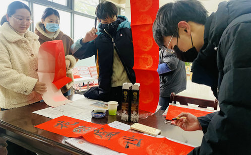 在“筆墨迎春”區,大學生書法愛好者現場揮毫潑墨,為居民書寫春聯和福字。“一元復始呈興旺,萬象更新展宏圖”“春回大地千山秀,日暖神州萬物榮”……一副副筆力遒勁的春聯鋪滿長桌,墨香四溢。居民們或挑選心儀的對聯,或排隊等待“定制”祝福?;顒庸菜统龃郝?/font>200余副,將節日的喜慶傳遞到家家戶戶。這場熱鬧的市集背后,是10余名志愿者的默默付出。他們中有退休黨員、網格員,還有放假返鄉的大學生。20歲的大學生志愿者小范負責維持秩序,他說:“看到爺爺奶奶們滿意的笑容,我覺得所有辛苦都值得。能為社區貢獻力量,這個寒假特別有意義。”